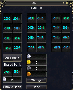 Note: Other than the addition of the 8 new slots, the main bank slots are the same as Titanium, but slots inside bags are +1 to what Titanium uses.