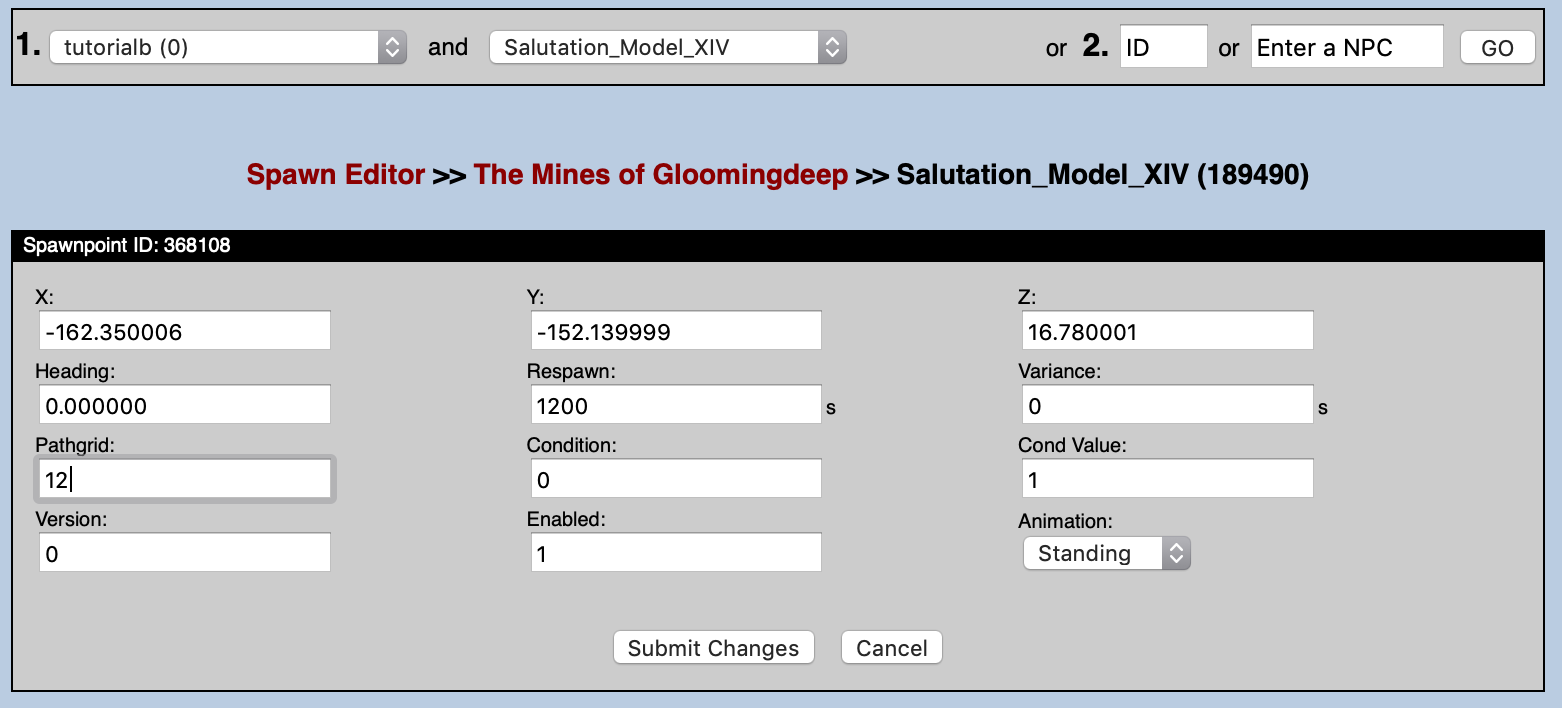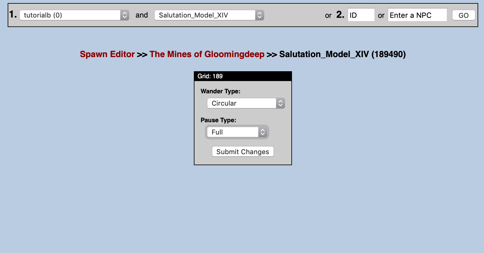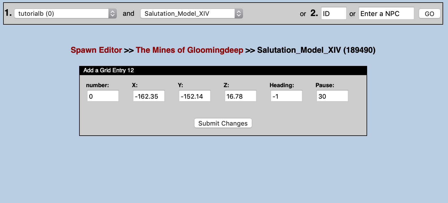 The first Waypoint (waypoint number 0) will be our Spawnpoint, always. Enter in the values and click the Submit Changes button. You will be redirected to the Grid Editor review screen.