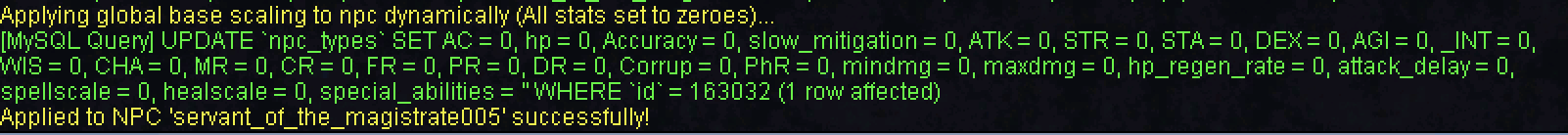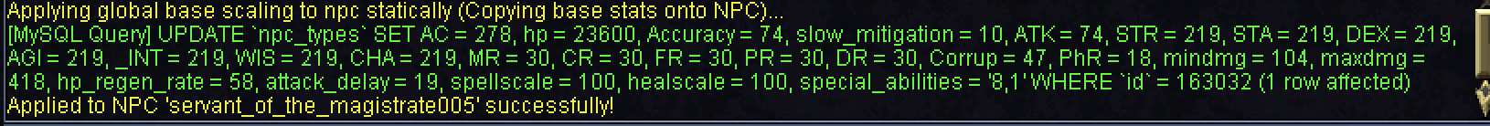 With the above commands, static essentially going to take the scaling profile from the table above and applied it directory to the npc_types data on the NPC itself