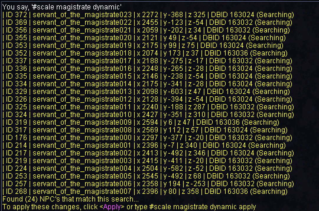 - scale [npc_name_search] [static/dynamic] (To make zone-wide changes)